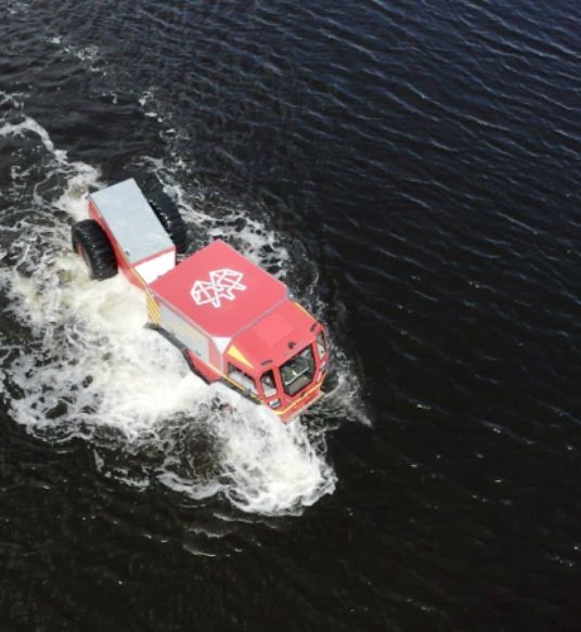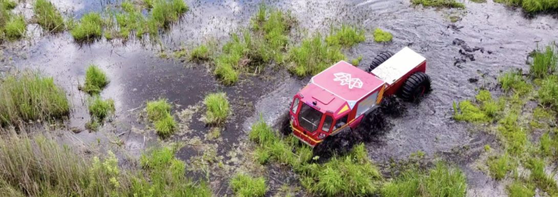 This unique amphibious UTV brings together technology, safety, and even comfort to transport supplies, equipment, or up to 22 people to remote jobsites, chewing up every terrain in its way with its durable 63″ tubeless ultra-low pressure tires.