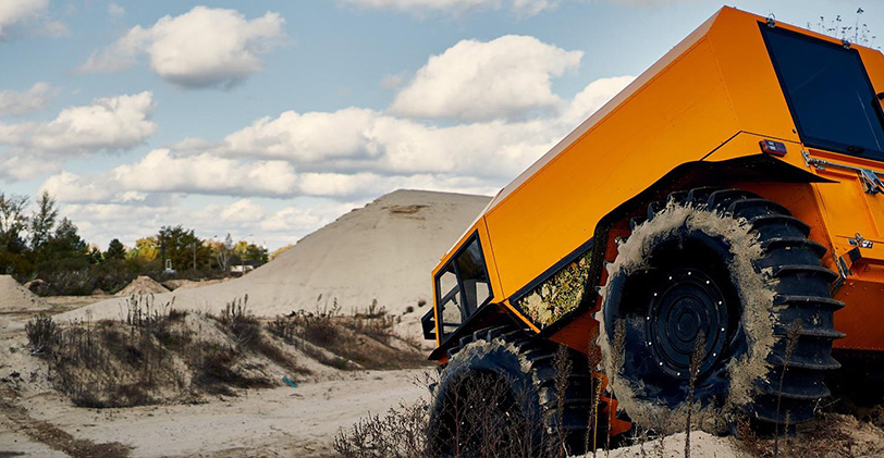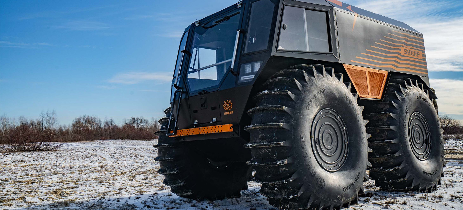 A part of SHERP’s unique patented suspension system, tubeless ultra-low pressure tires provide plenty of ground adhesion and stability, and are self-inflating to optimize your traction regardless of travelling through water, sand, mud, snow, or across hard surfaces.
